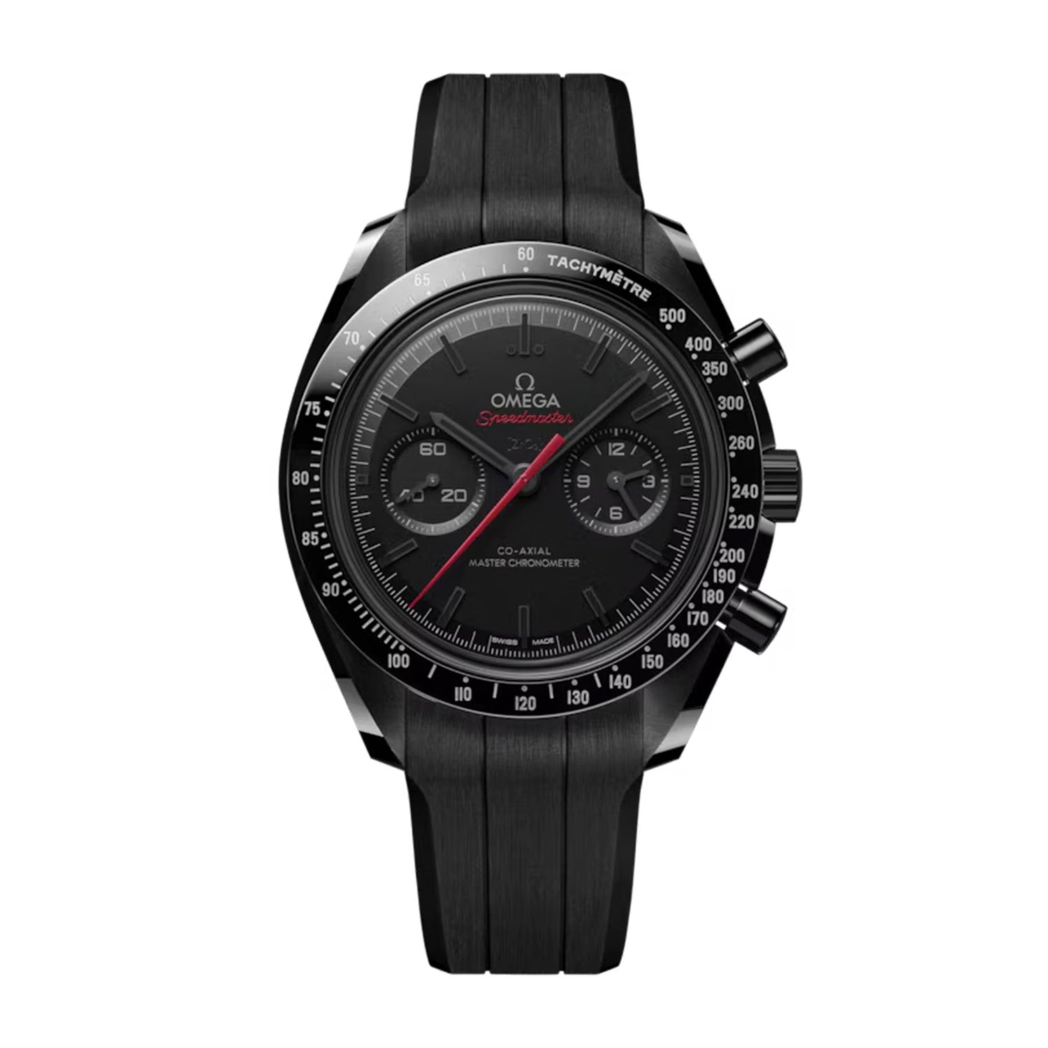 Completing this remarkable timepiece is a black rubber strap with a lunar surface pattern on the underside, a ceramic foldover clasp, and ceramised titanium frame-spring folders, combining comfort with durability. Leveraging OMEGA’s decades of expertise in ceramic technology, this watch is lightweight, scratch-resistant, hypoallergenic, and non-magnetic. With features such as chronograph functionality, tachymeter, small seconds, and a display caseback, the Dark Side of the Moon is a masterful blend of technical innovation, celestial inspiration, and modern elegance.