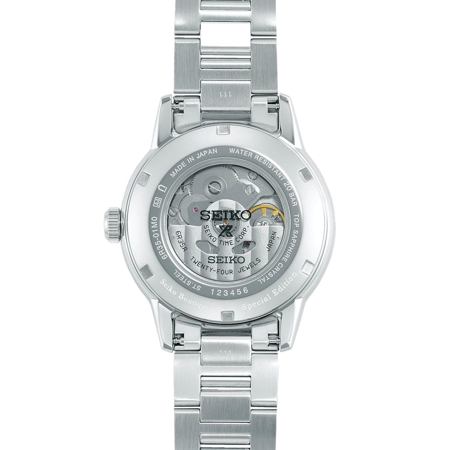 At the heart of the watch beats Seiko’s in-house Caliber 6R35 automatic movement, offering manual winding capability and an impressive 70-hour power reserve. Designed for reliability, it features a stop-seconds function and date display, ensuring accuracy and everyday practicality. LumiBrite-coated hands and indexes provide strong legibility in low-light environments, reinforcing the watch’s tool-oriented roots.