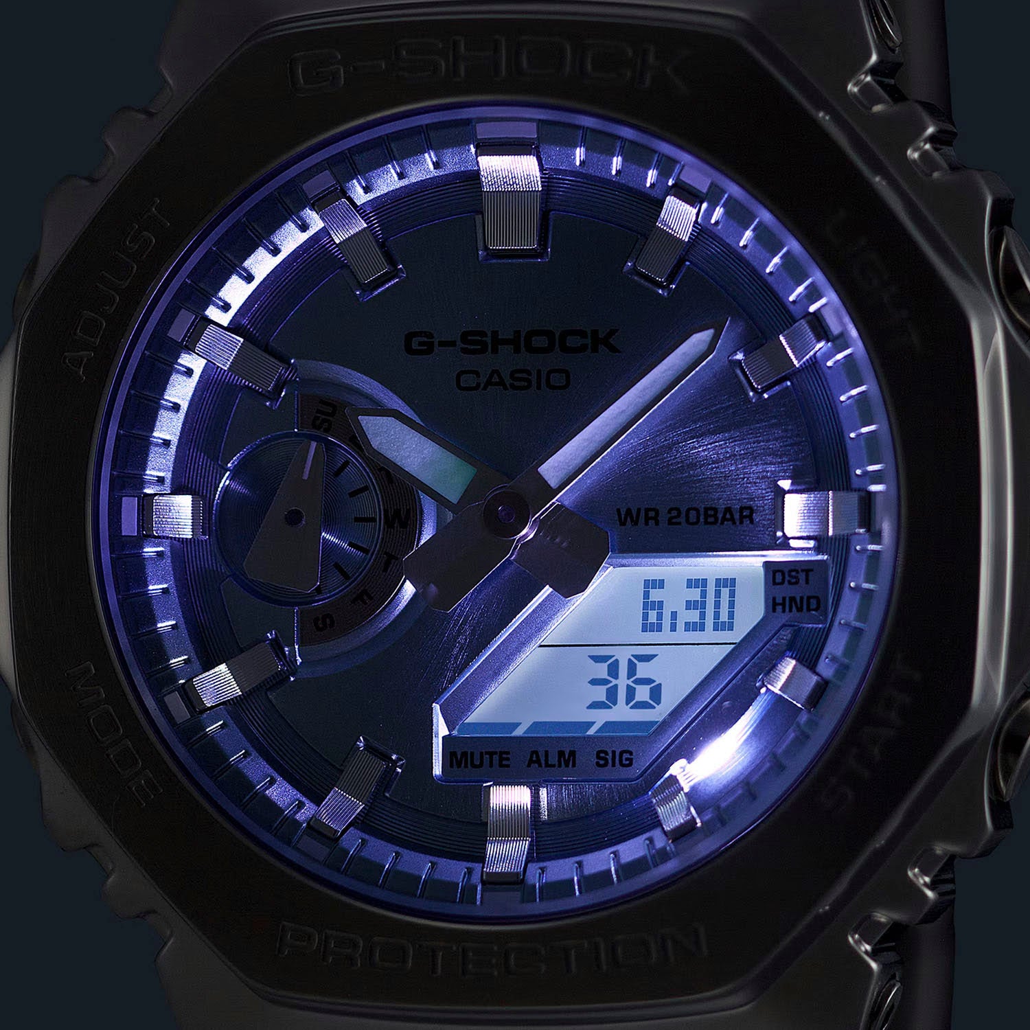 True to the spirit of the very first G-Shock, this model remains committed to the brand’s core values of durability, reliability, and timeless design. Practical features such as 200-meter water resistance, world time across 31 time zones, stopwatch, countdown timer, five daily alarms, and a Super Illuminator double LED light ensure everyday usability. The GM2110D-3A1 delivers a perfect balance of toughness and elegance—an enduring timepiece designed to be worn and enjoyed for years to come.